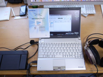 現在も使用中のオリンパス製ICレコーダーDS-50の音声ファイルに対応した管理用ソフトウェアDSS Playerとフットペダルを合わせて約1万円。アマゾン価格である。